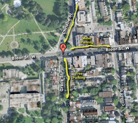 There is free parking on Grace street. As well, there is meter parking on Bloor and Christie streets.